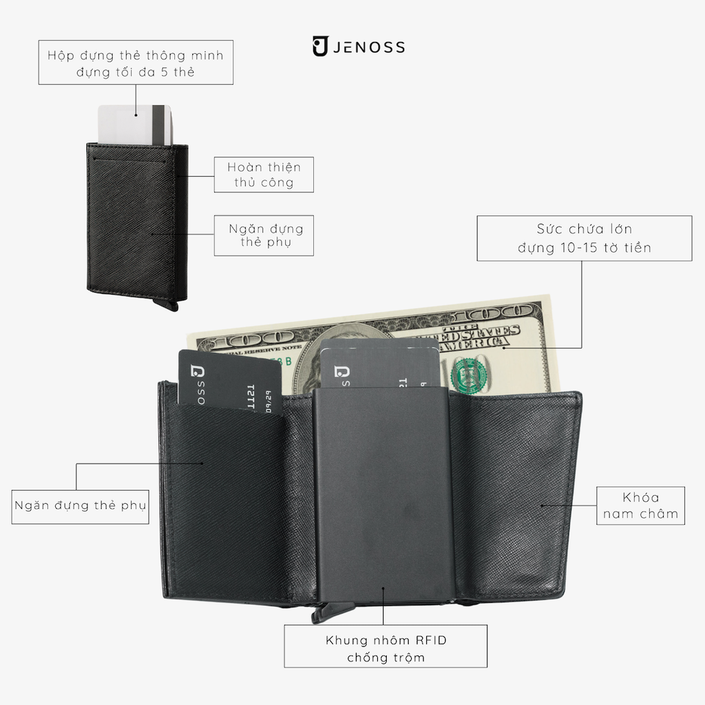 ▫️ Điểm nhấn: Hộp đẩy thẻ tự động bằng nhôm đựng 5-6 thẻ ATM, nút gạt phải, chống trộm RFID.